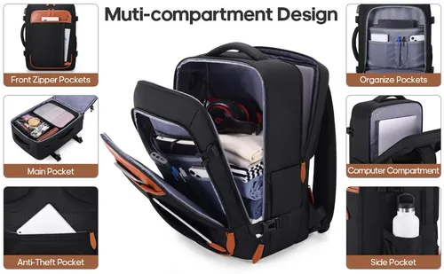 🔥Travel Backpack (Hidden straps) Carry on Luggage, Business Laptop Traveling Weekender Bags (Black)
