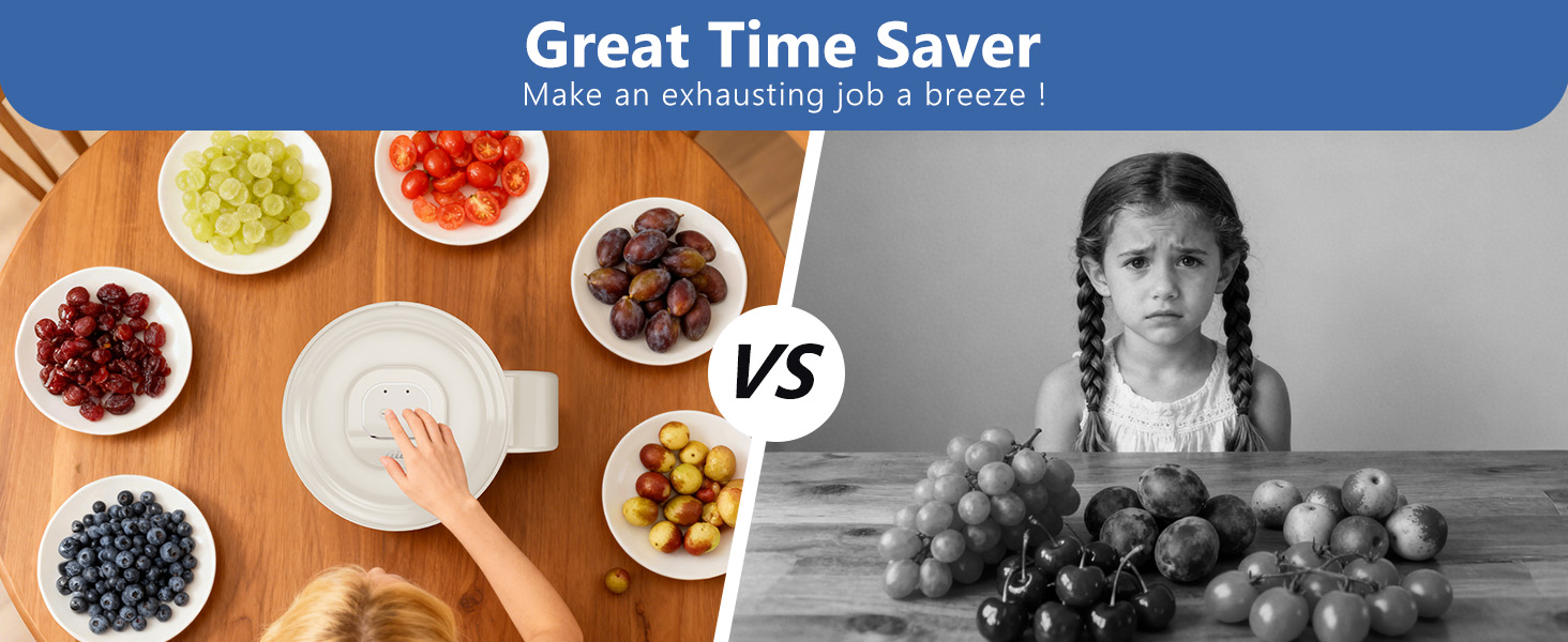 Fruit Efficient Peeling Saves Time and Effort: The Electric grape peeler, equipped with a simple and attractive design and a high-efficiency motor, features a 50-watt brushless motor and 200 mm stainless steel blades. It is easy and fast to peel the skin in just 20 seconds. suitable for both home and commercial use.eeler