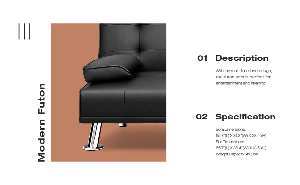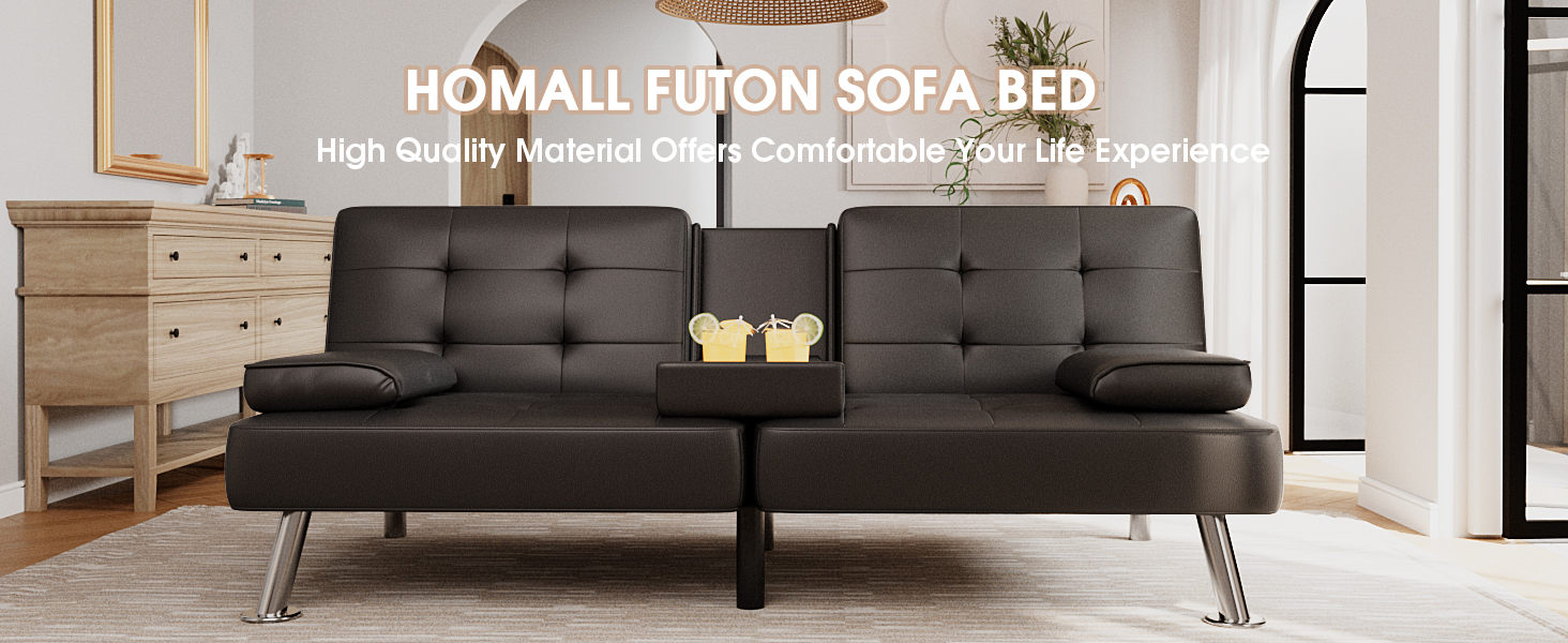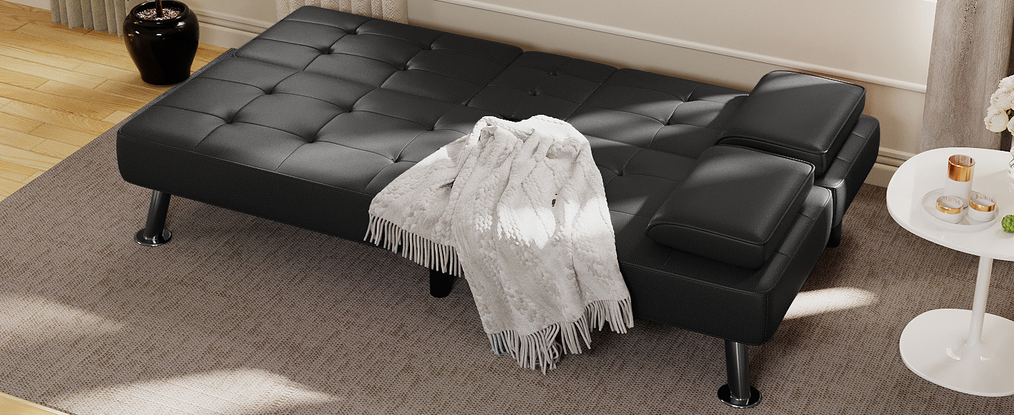 Cozy Time: The futon couch is filled with high-resilient sponges, soft and supportive, covered by selected material, delivering relax and comfort experience just right. The 2 removable cup holders bring much convenient to get a drink when sitting in the sofa