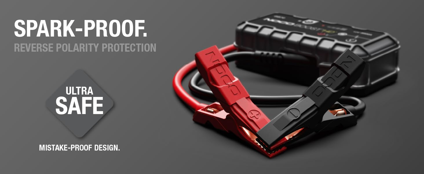ULTRASAFE TECHNOLOGY — Engineered with patented spark-proof and reverse polarity protection for foolproof connections to any 12V vehicle - no sparks, no wrong connections.