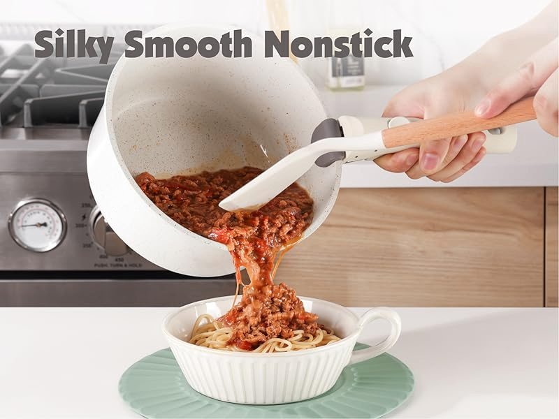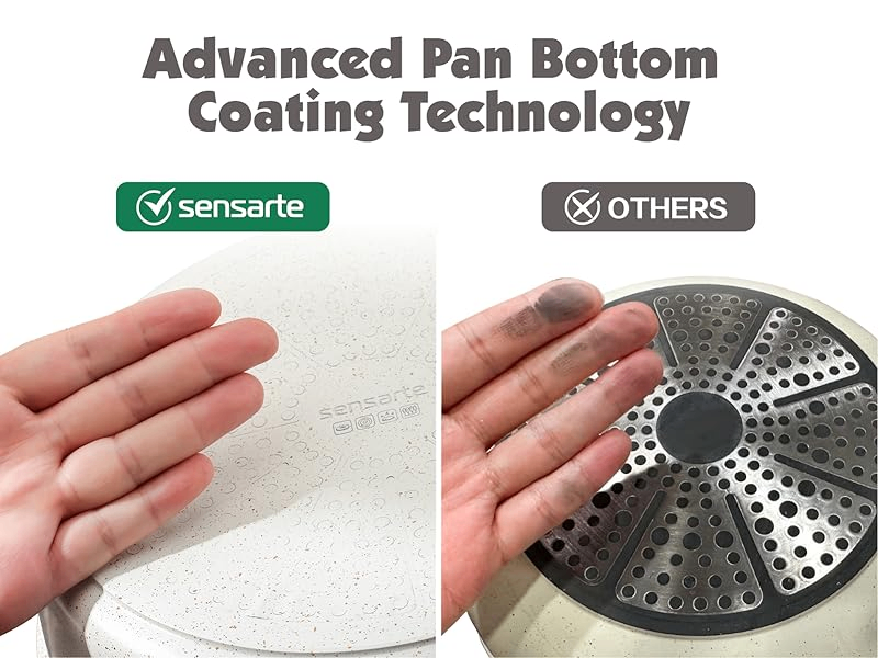 Dishwasher Safe - Cleaning is a breeze. Professional wear-resistant design for the bottom of the pan set that prevents black residue even when used in the dishwasher.