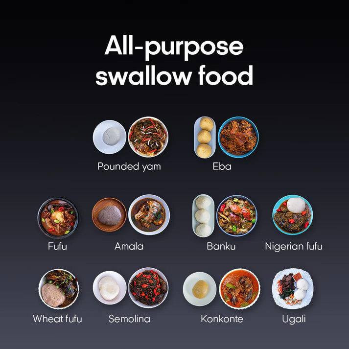 Syinix swallow maker is designed to simplify the preparation of various traditional African swallow foods, such as fufu, ugali, banku, eba, konkonte, amala, pounded yam, and semolina. Its fully automatic, one-touch operation emulates traditional hand-pounding techniques, delivering authentic textures and flavors while freeing users from manual labor.
