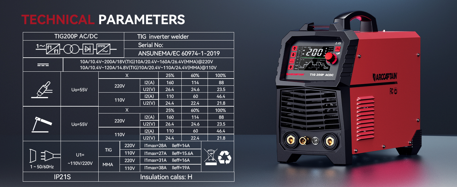 Item model number:ARCCAPTAIN TIG200PACDC